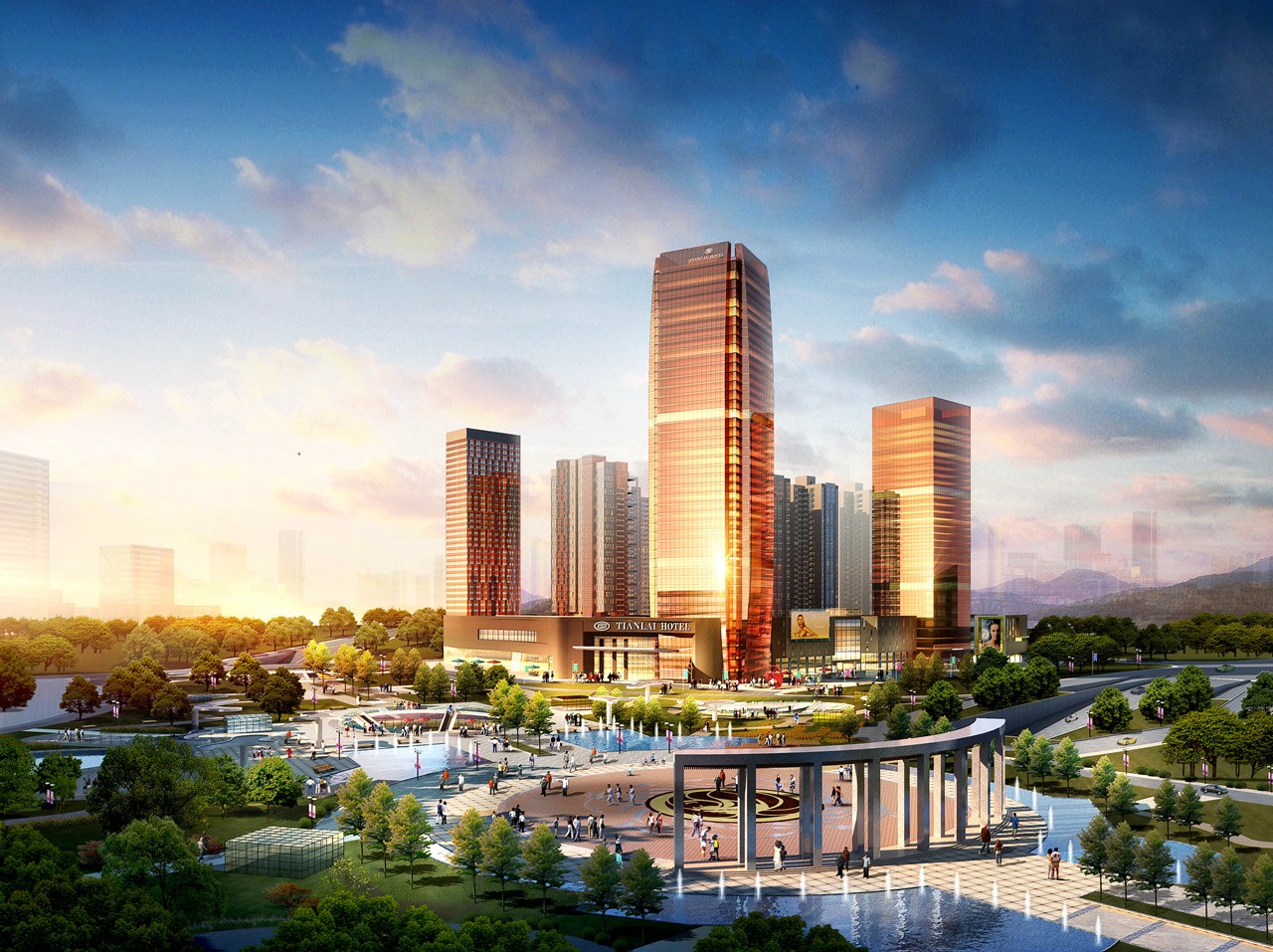 天来国际广场(60万方城市综合体)是由天来控股集团倾力打造的,集白金五星级酒店、购物中心、时尚街区、高档住宅、总裁官邸、酒店公寓、甲级写字楼等诸多功能为一体的高端城市综合体。